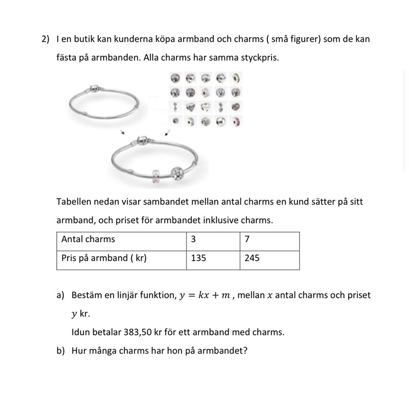Ok! Har räknat ut att 1 charm kostar 27,5 kr och armbandet kostar 52,5 kr