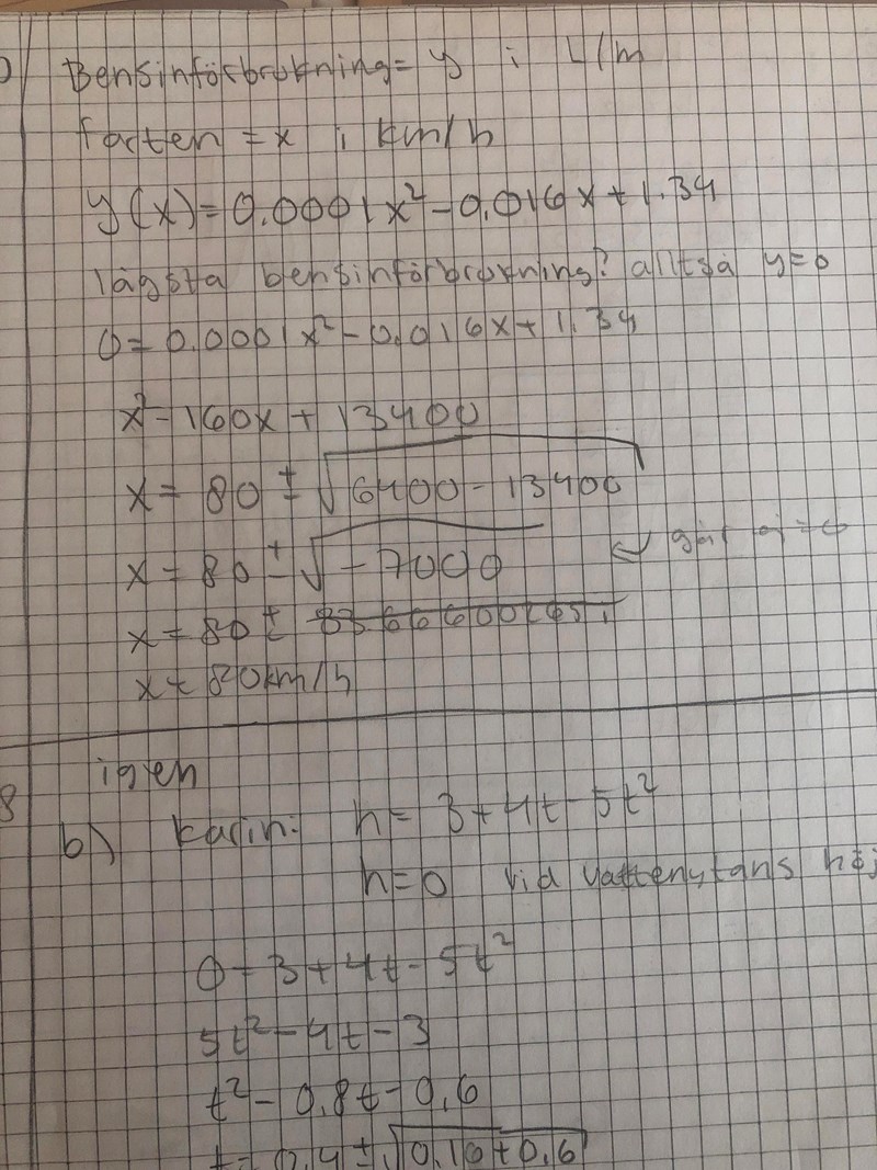 y(x)=0,0001x^(2)-0,016x+1,34. lägsta bensinförbrukning. Uppgift 3230 liber ma2c