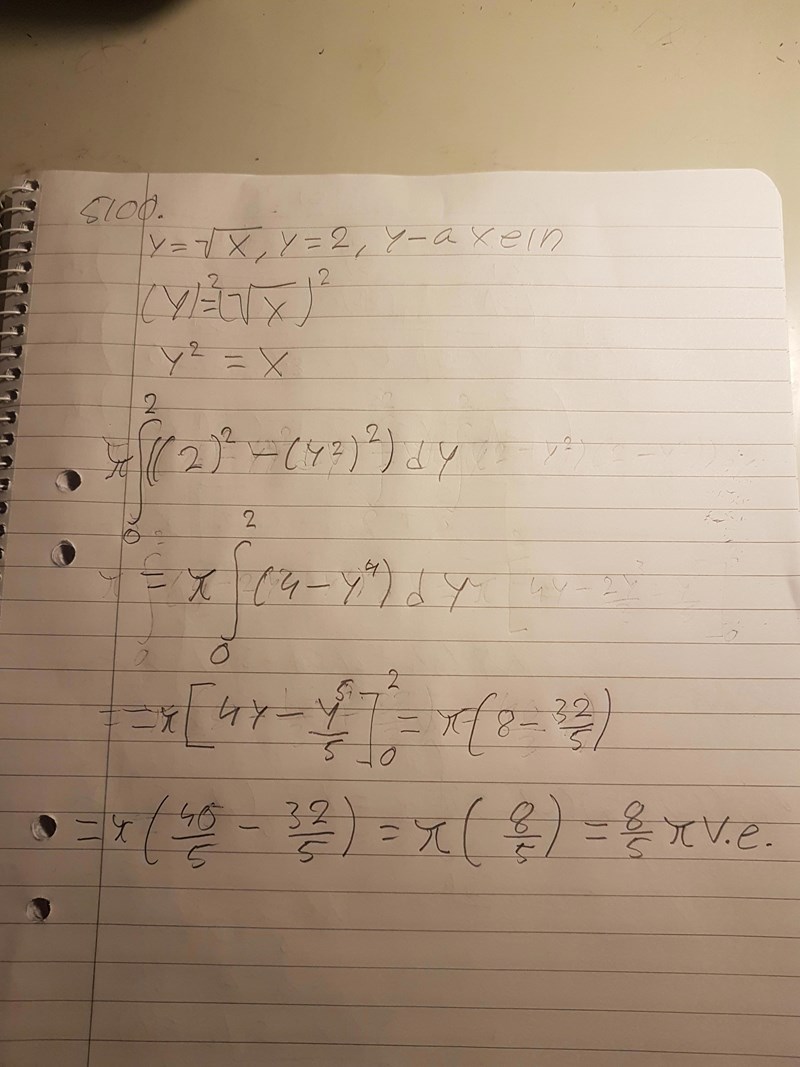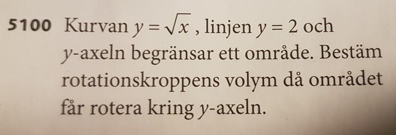 y = √x, y = 2 och y-axeln begränsar en volym vars rotation är kring y-axeln