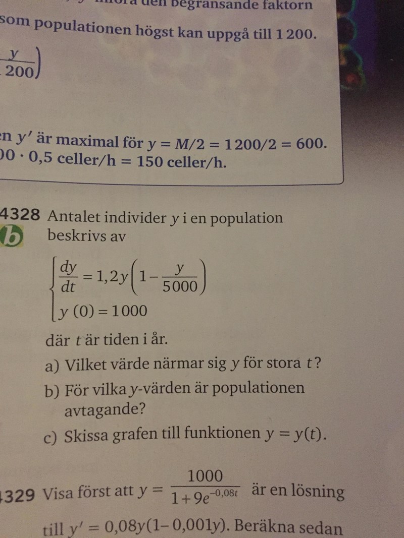 y(t) är den funktion som anger antalet individer i populationen vid tidpunkten t (år).