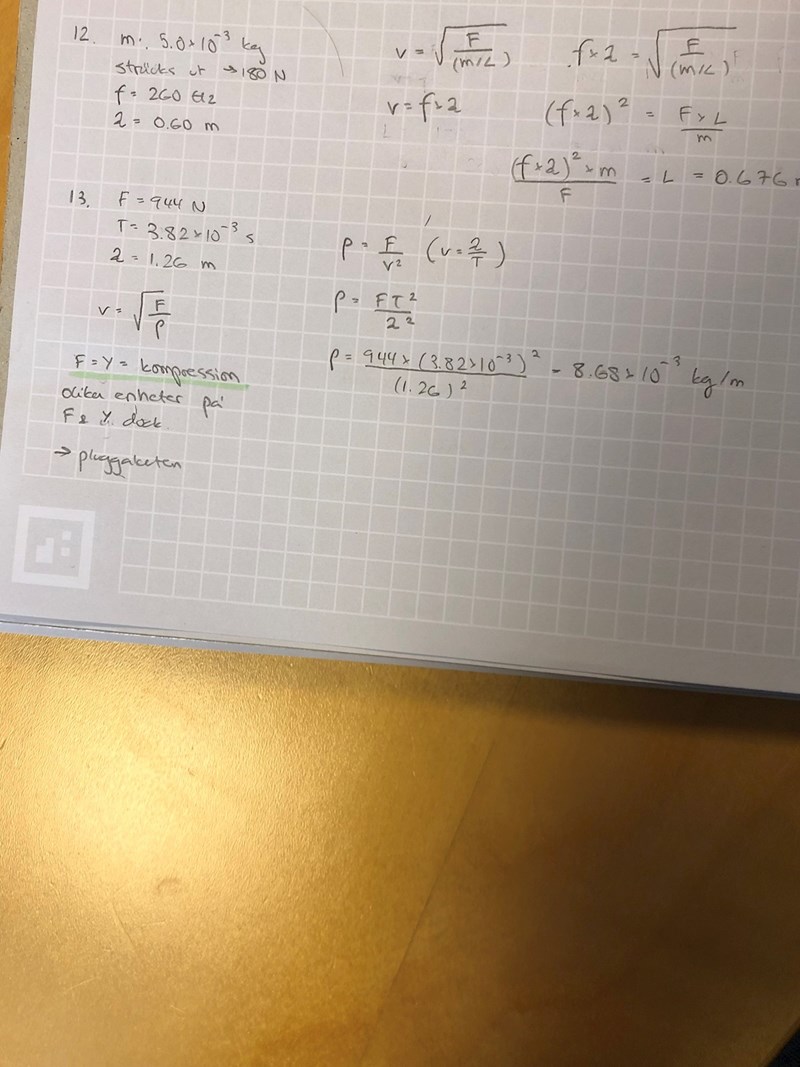 Hejsan! Jag har precis gjort uppgift 13 nedan men har svårt att förstå hur man kan ersätta Y med F (se uträkning nedan). Är det för att hastigheten kvadreras och att enheten då blir N/m^2 för Y, det vill säga det som har ersatts med F i beräkningen? Tack på förhand!