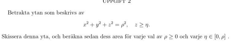 Är du menar att det kan beräkna ut med hjälpa av rymdpolära koordinator? Här funktionsytan är z=sqr ( p^2- x^2-y^2).