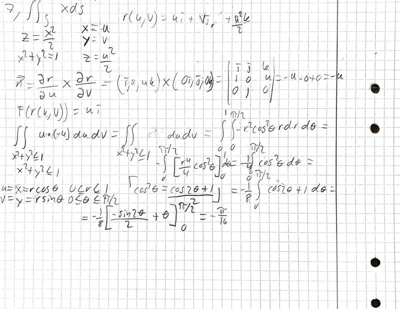 Där r(u,v) är en parametrisering av den paraboliska cylindern och n är normalvektorn.