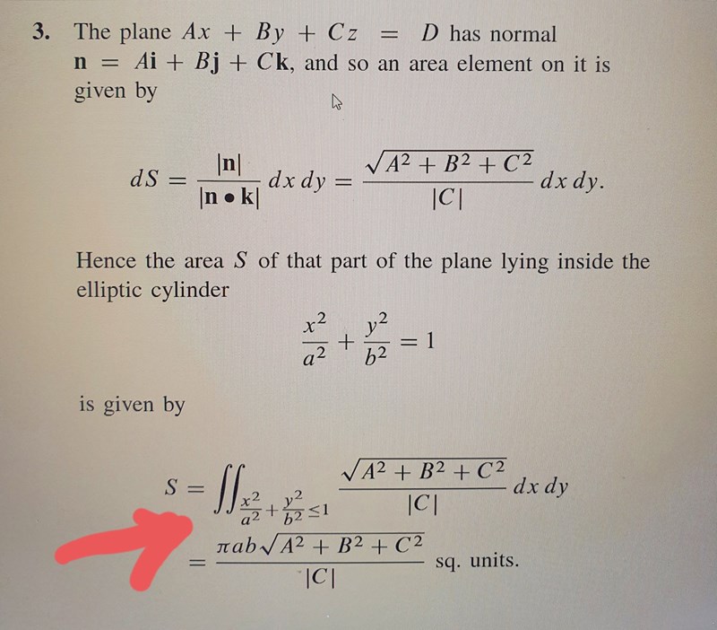 Det uttrycket motsvarar ytan innanför ellipsen, dvs ab.
