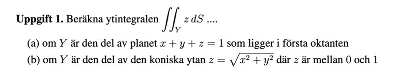 Ytintegraler uppgift 1
