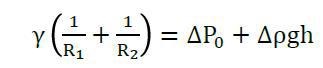 Tryckskillnaden över en droppe ( P(insida) - P(utsida) ) ges allmänt enligt vänstra halvan av ekvationen nedan: