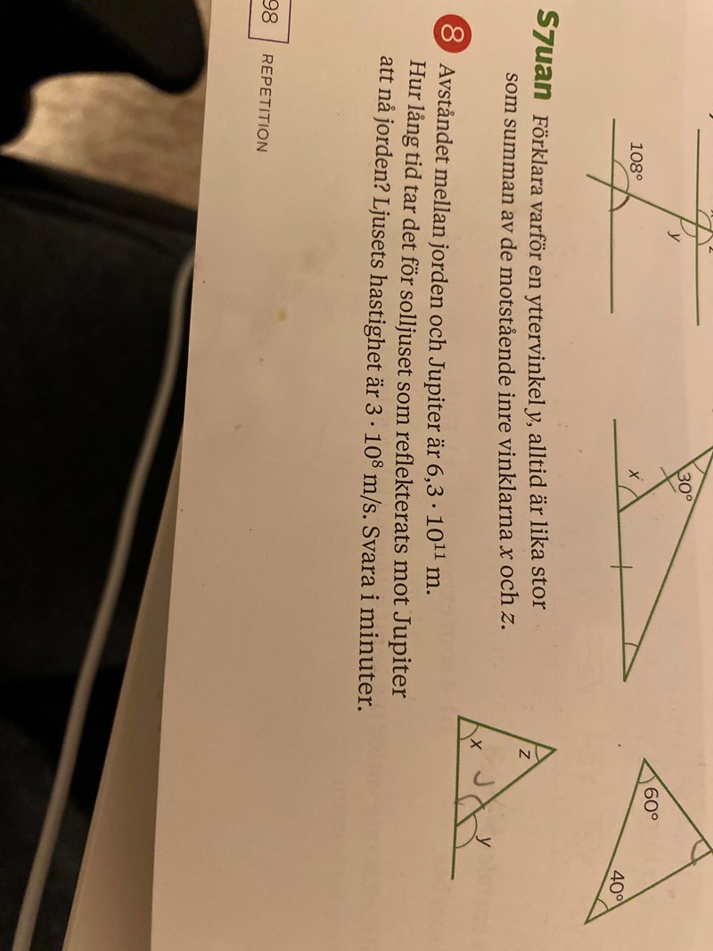 Vinkelsumman i triangeln är 180 grader X+Z+J =180