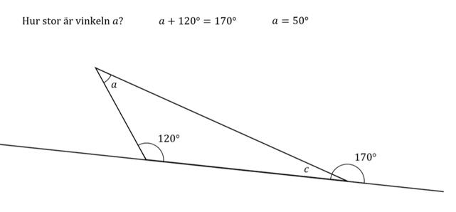 Yttervinkeln är bara de delar av vinkeln som är utanför triangeln, dvs. 170.