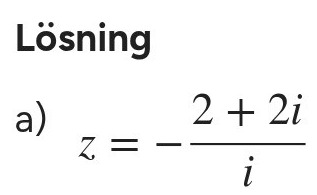 Det du skriver är något annat. Lösningen börjar med z = -(2+2i)/i.