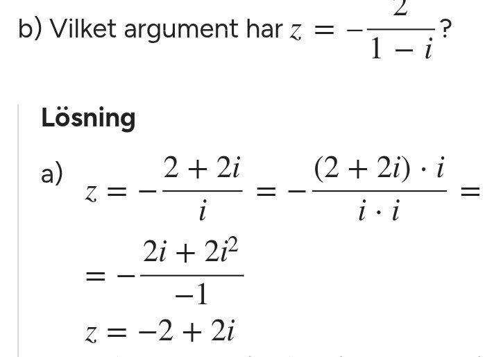 Hej, hur får de att z=-2+2i? jag får det till 2+2i ?