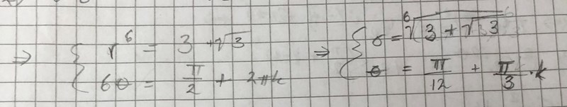 Blir r^6 = 3 + √3 -> r = 6√3 +√3