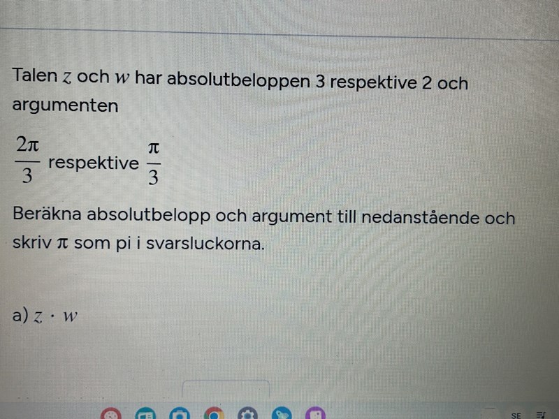 Ja. Det ena komplexa talet har argumentet och absolutbelopp .