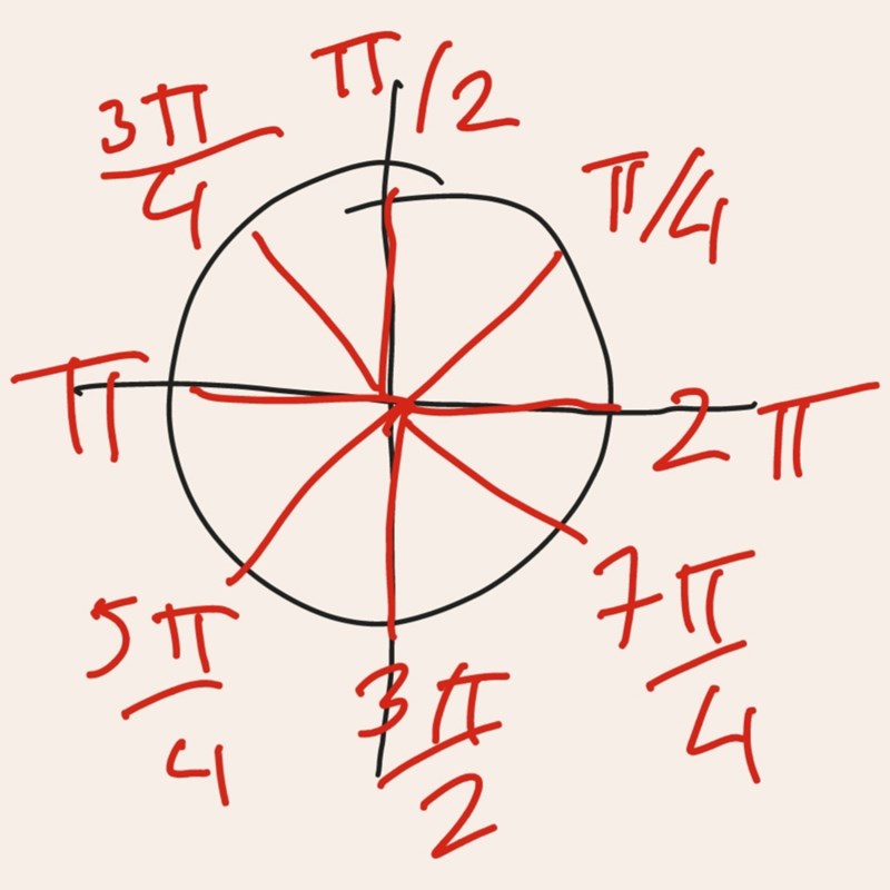 sen kan man se i enhetscirkeln att de ligger på första , andra och tredje etc.