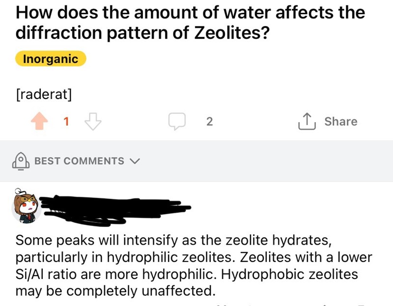 Hej vad menas med hur vattenmängden påverkar diffraktionsmönstret hos Zeoliter?