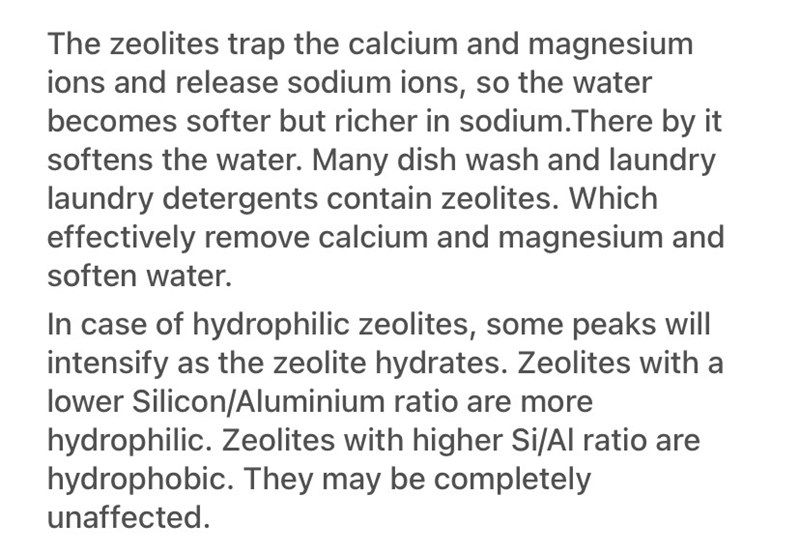 Zeoliter är kristallina mineral. Hur tror du kristallen påverkas, om kristallen innehåller mer eller mindre vatten? Jämför t.ex. med kristallstrukturer av salter, där kristallvatten finns i vissa former av saltet, men inte i andra.