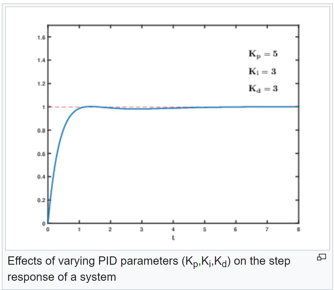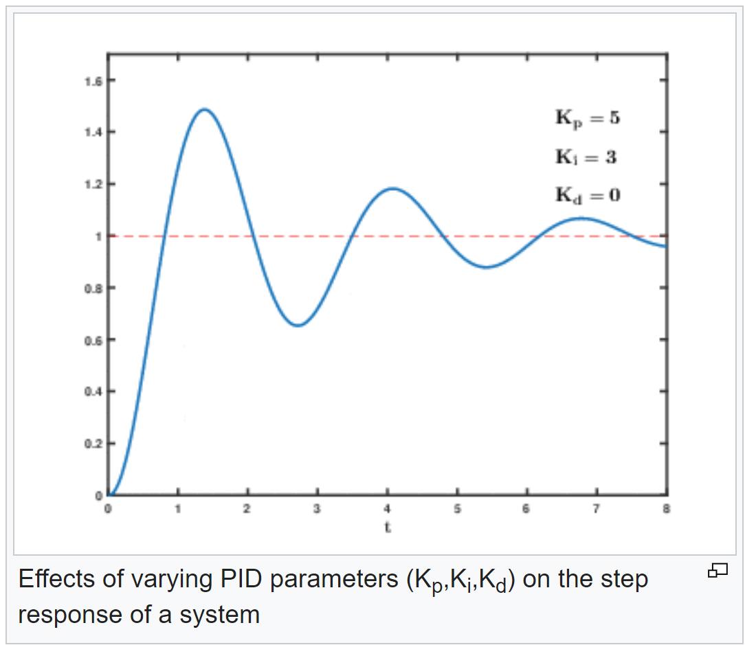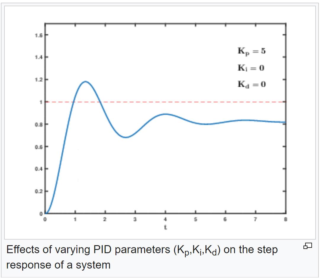 Nedanstånde bilder är saxat ifrån wikipedia https://en.wikipedia.org/wiki/Proportional%E2%80%93integral%E2%80%93derivative_controller "Manual tuning"-sektionen.
